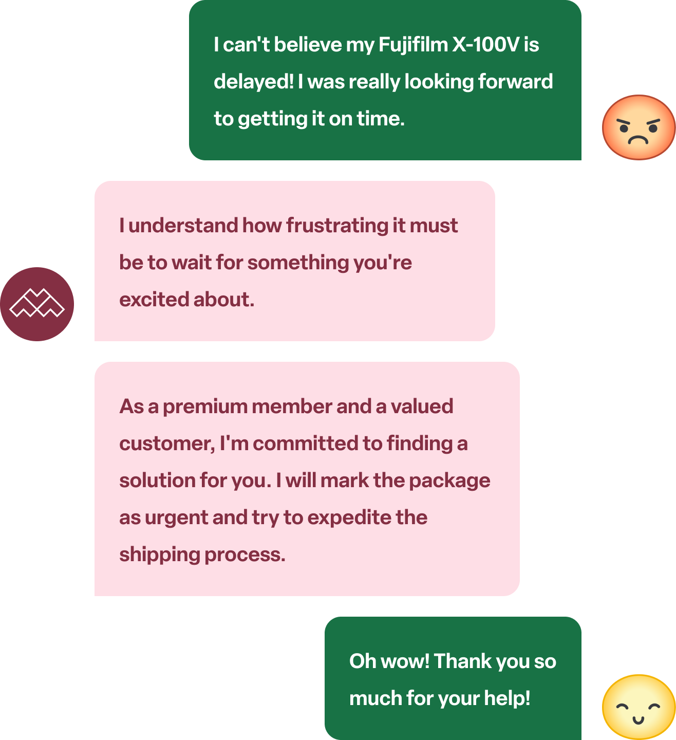 Whether it's a delay in shipment, a need to change an address, an issue with an offer or coupon, or a cancellation request, Meera Ai assesses the severity and genuineness of each problem with an understanding of the customer's past interactions and preferences.